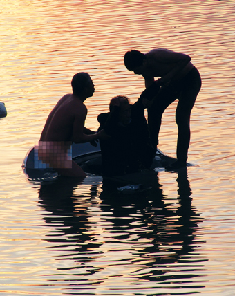 幫助下,落水者被拖上了岸。