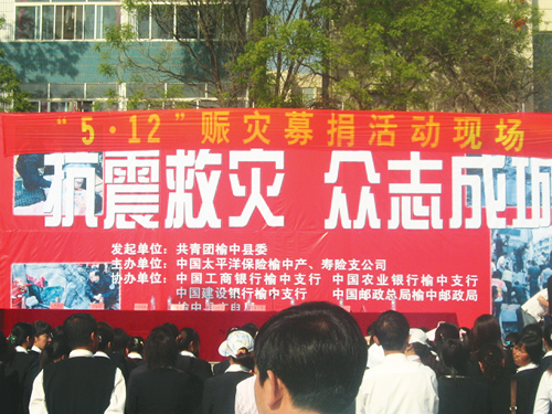 產、壽險甘肅分公司榆中支公司主辦大型賑災募捐活動。